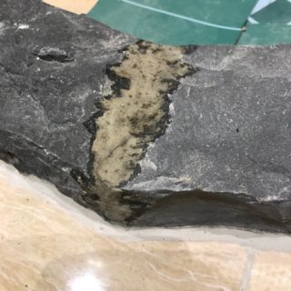 目地を補修して、模様の違う石版を一枚の板に見えるように色合わせしました。