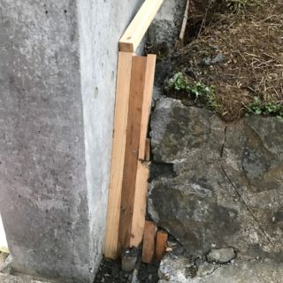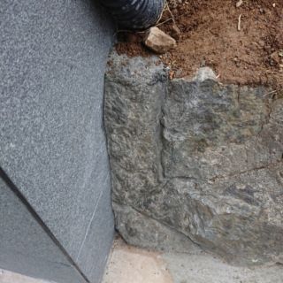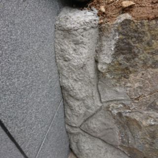 石ブロックの擁壁をモルタルで整形した後、色合わせしました。