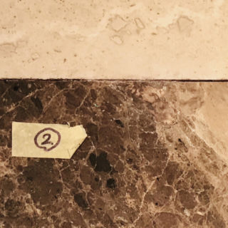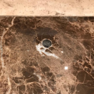 ショーケースを移動する際、固定するために大理石の床に空けていた穴を補修しました。