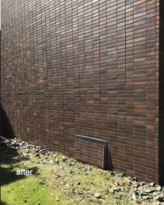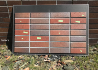既存建物のタイルと同じ仕様の建物を隣に新築した際に、ロットの違いで全く色味の違うタイルで建築されてしまったタイルを色合わせしました。