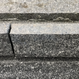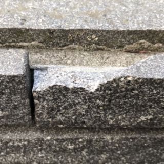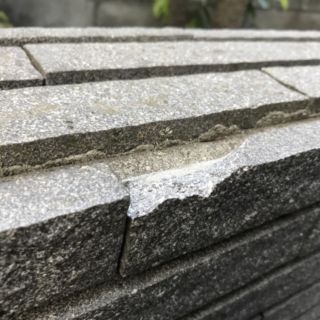 御影石ボーダー割肌で仕上げた住宅エントランス擁壁の欠けてしまった部分を補修しました。